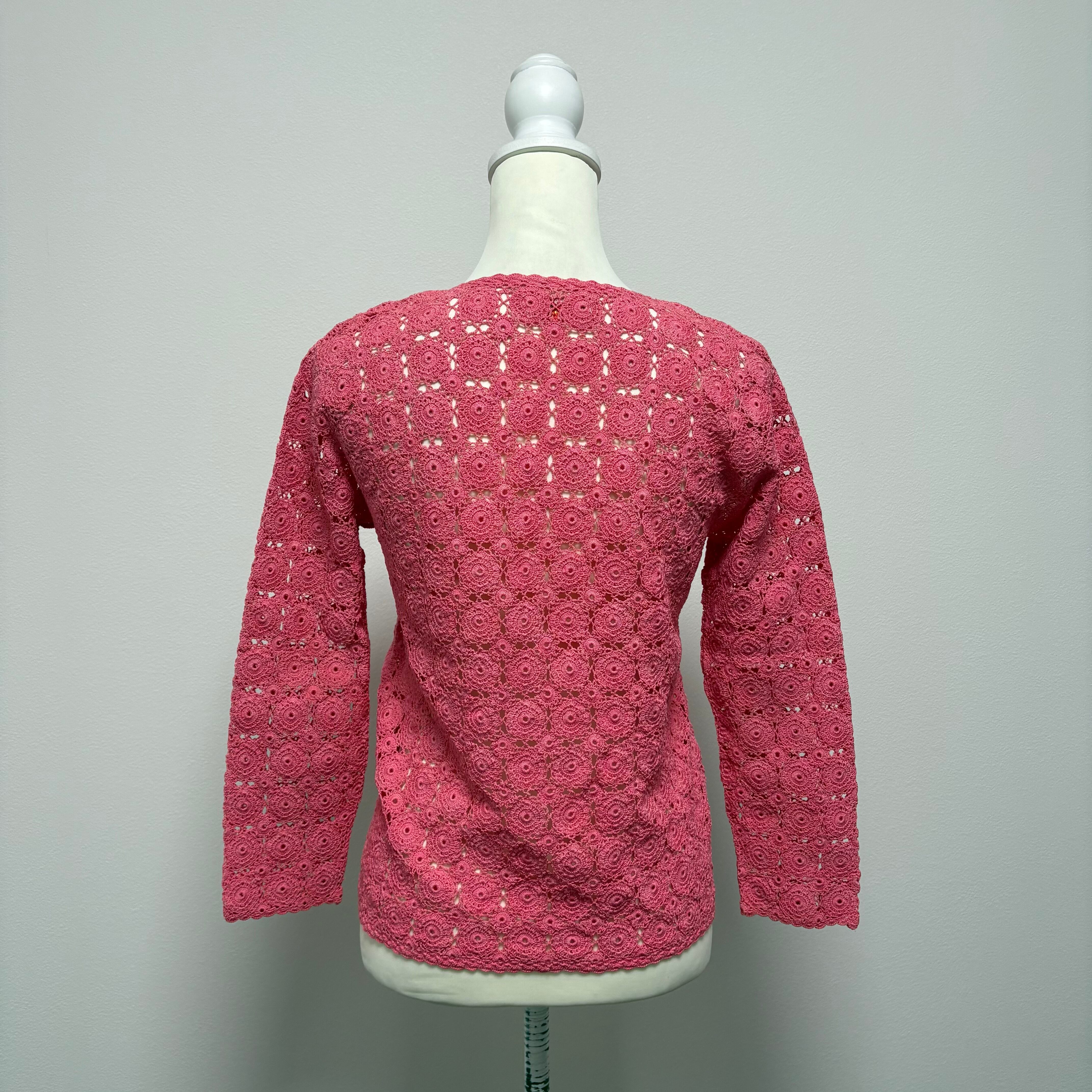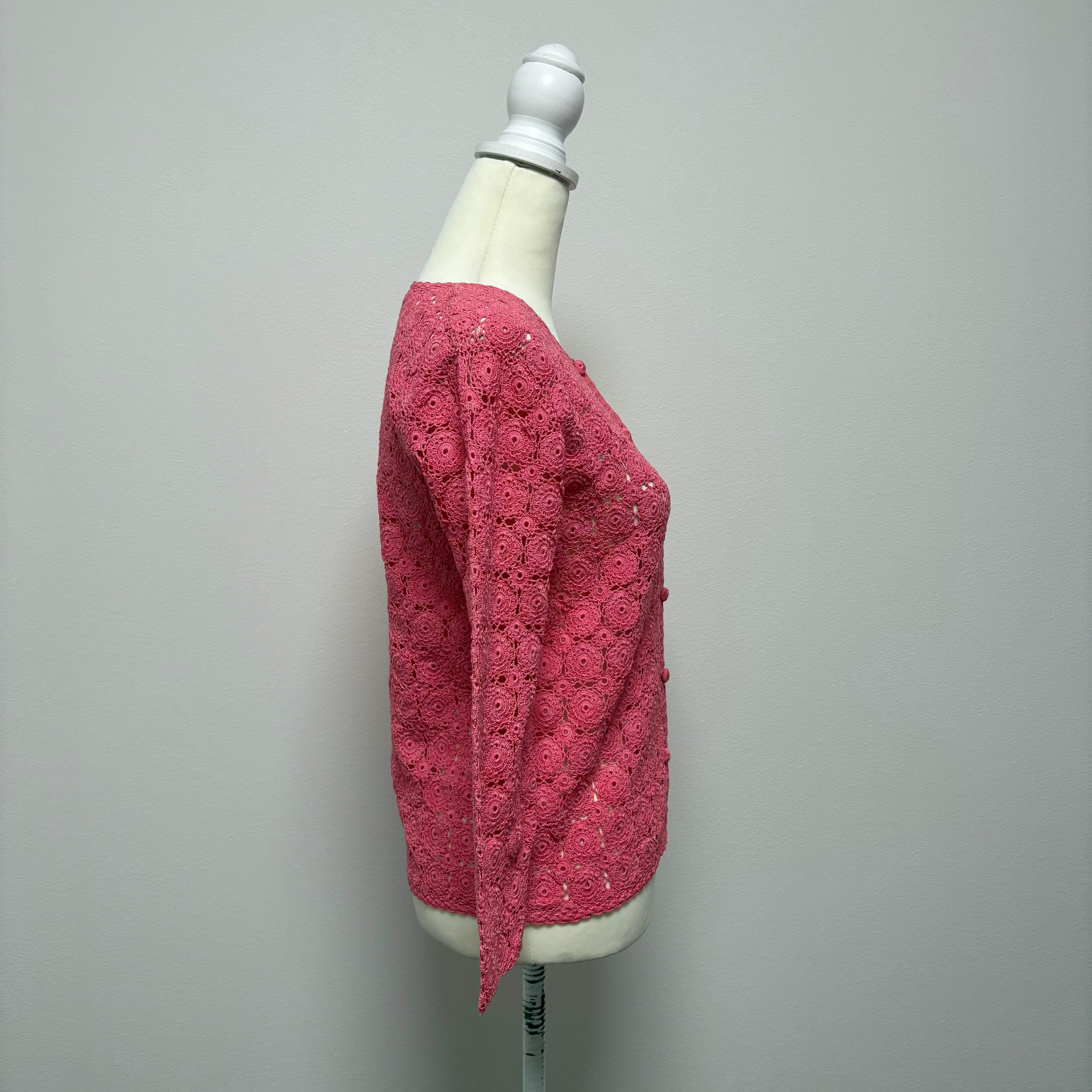 ヴィンテージ ピンク クロッシェニットカーディガン