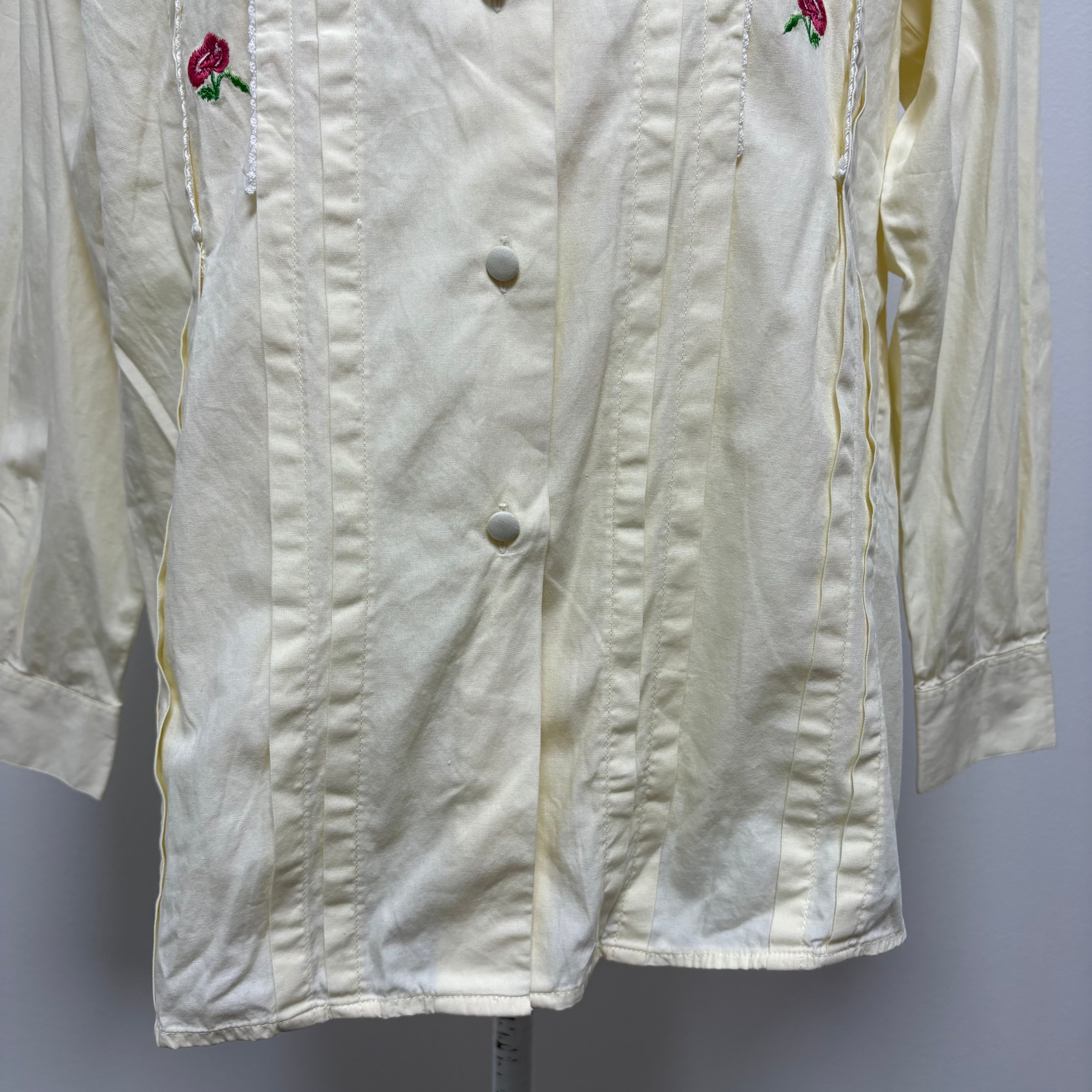 イタリア製 STEFANEL 刺繍 レースシャツ リス 花 動物