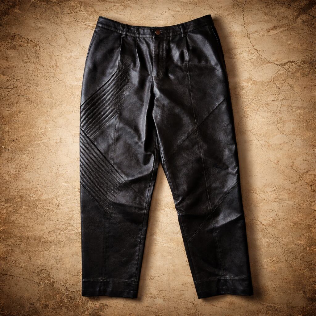 黒のタートルネックやショート丈トップスと合わせると、レザーパンツのステッチが際立ち、洗練された雰囲気に。レザージャケットと重ねてもセットアップのようにまとまりが出て◎